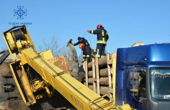 Під час розвантаження дерев’яних колод перекинувся автокран «ЗІЛ-130».