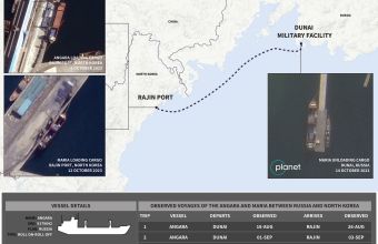 Експерти інституту вивчили супутникові знімки, зроблені останніми місяцями над базою Тихоокеанського флоту РФ у Фокіно Приморського краю та північнокорейським портом Расон. Згідно з знімками, у серпні-вересні 2023 року між Фокіно та Расоном почали курсувати суховантажі "Ангара" та "Марія". Стверджується, що за цей час перевезли сотні контейнерів в обох напрямках. Зазначається, що обидва судна плавають з вимкненими транспондерами.