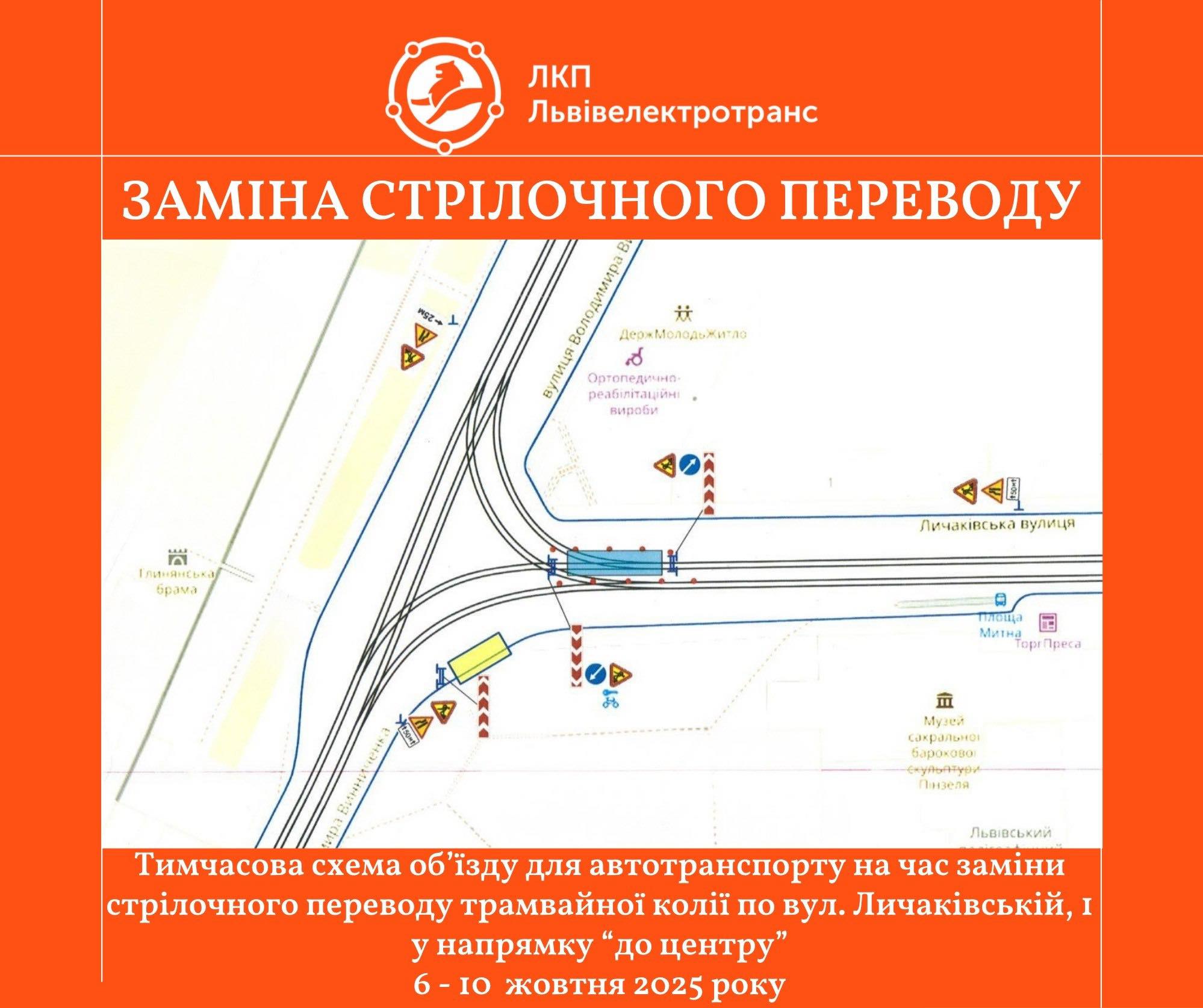 З понеділка розпочинають ремонт стрілкового переводу трамвайної колії на пл. Митній у Львові