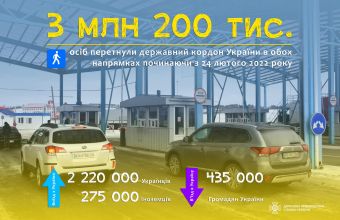 З початку повномаштабного вторгнення росії в Україну державний кордон України перетнуло 3,2 млн осіб. З країни виїхало 2,2 млн, а повернулося - 435 тис. осіб.