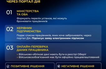 - керівник подає через портал Дія заяву про бронювання та засвідчує її електронним підписом;