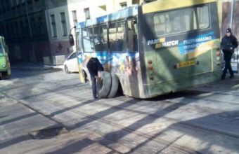 «На площі Данила Галицького в маршрутки відвалилось заднє колесо. Проїзд дуже ускладнений. Трамваї стоять», – повідомили сьогодні, 20 лютого, на сторінці громадської організації «Варта 1» в інтернет-мережі «Facebook», де також опублікували фото з місця ДТП.