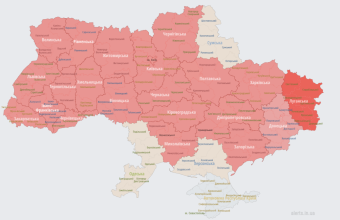 Повітряна тривога оголошена у всіх областях України, крім Херсонської.
