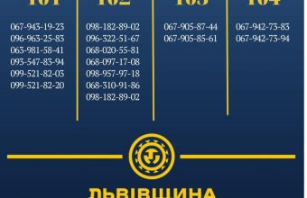 Запасні номери для екстрених служб у Львівській області: 101,102,103,104.