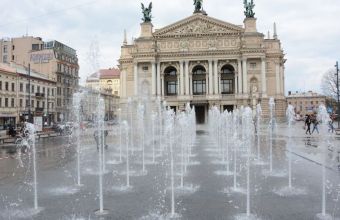 Фонтан біля Оперного театру вже працює. Загалом у центральній частині Львова вже відновили роботу всі фонтани.