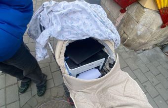 За словами чиновника, на фото – дитячий візочок з ноутбуком і принтером замість дитини. А замість батьків - «комерсанти», що ховають свій нелегальний бізнес.
