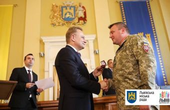 «Командир 80-ї окремої десантно-штурмової бригади Володимир Шворак вручив міському голові Львова Андрію Садовому нову емблему бригади зі зображенням золотого лева», – поінформували також у міськраді.