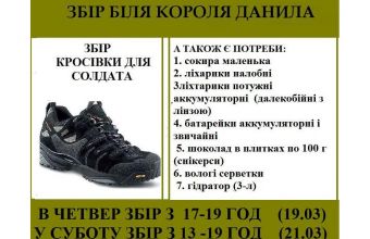 Завтра біля пам’ятника королю Данилу у Львові знову збиратимуть з 17.00 до 19.00 необхідне фронтовикам