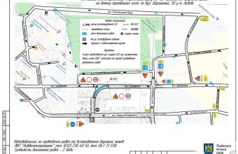Від завтра, 13 серпня, з 20.00 год і до 05.00 год 17 серпня 2020 р, буде перекрито рух транспорту на вул. Дорошенка, 50.