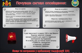 «Звучання електричних сирен означає сигнал цивільного захисту «Увага всім». Почувши його, негайно увімкніть радіо, радіотрансляційні і телевізійні приймачі для прослуховування екстрених повідомлень департаменту з питань цивільного захисту Львівської облдержадміністрації. У зв’язку з тим, що мета увімкнення технічних засобів оповіщення навчальна, практичні заходи відпрацьовуватися не будуть. Населення повинно зберігати спокій».