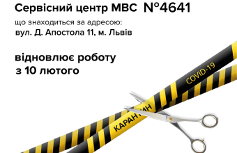 З 10 лютого відновлює свою роботу територіальний сервісний центр МВС № 4641 у м. Львові.