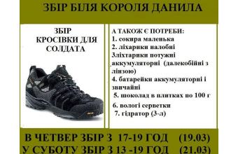 Завтра у Львові збиратимуть необхідне фронтовикам біля пам’ятника королю Данилу з 13.00 до 19.00