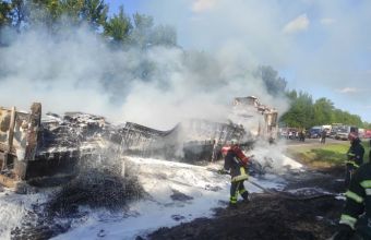 Як з’ясувалось, водій вантажівки, під час руху побачив дим, що вибивався з причепу. Чоловік негайно зупинив транспортний засіб та викликав вогнеборців.