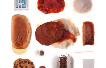 Тут є розчинні чай або кава, цукерки, є основна страва – картопля з м’ясом і соусом та розчинний суп, сухе м’ясо. На десерт – набір різних консервованих фруктів та різні варіанти напоїв, кілька різних соусів.