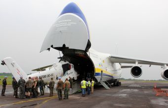 «Цими вихідними з летовища Міжнародного аеропорту «Львів» імені Данила Галицького здійснив до міжнародного аеропорту Кісінгані в Демократичній Республіці Конго рейс вантажний літак Ан-124-100 «Руслан», який доставив для військовослужбовців 18-го окремого вертолітного загону Місії ООН зі стабілізації авіаційну техніку та майно, яке необхідне для виконання завдань. Як повідомив командир 18 окремого вертолітного загону, льотчик-снайпер полковник Володимир Колотило з України до Демократичної Республіки Конго було доставлено чотири вертольоти – два ударні вертольоти Мі-24П та два Мі-8МТ, авіаційне майно, різноманітні агрегати та запчастини для військової техніки, а також інше майно, що потрібне для підтримання життєдіяльності українських військовослужбовців та виконання завдань за призначенням в африканській країні.