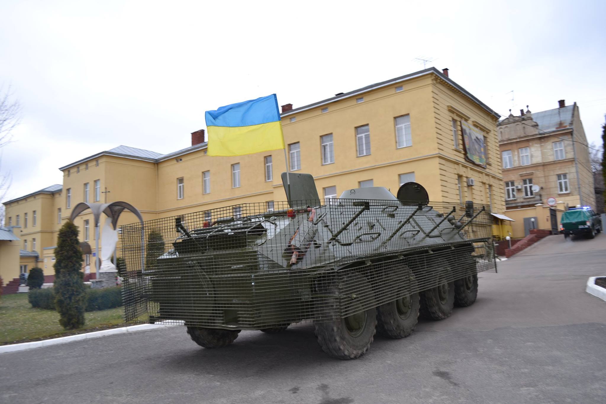 «24 березня 2016 року на виїзді зі Львова, у Жовківському районі освячено для відправлення на схід відремонтований бронетранспортер», – де також розповіли подробиці: