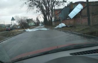 Вулиця Персенківка у Львові перекрита зірваним дахом.