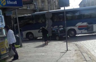 У п’ятницю, 24 травня, на площі Івана Франка у Львові не розминулися автобус і легковик.