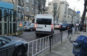Про це повідомили на сторінці громадської організації «Варта 1» в інтернет-мережі «Фейсбук», де також опублікували фото з місця події й розповіли, що внаслідок зіткнення автомобілів призупинено рух трамваїв.