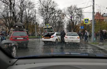 Про це повідомили в четвер, 14 листопада, на сторінці громадської організації «Варта 1» в інтернет-мережі «Фейсбук», де також опублікували фото з місця події й уточнили, що зіткнення сталося біля пам’ятника Тарасу Шевченку на проспекті Свободи. Відтак, там наразі заблоковано рух транспорту.