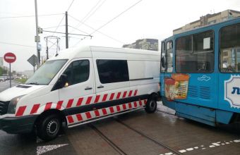 Трамвай №8 не розминувся з мікроавтобусом біля «Верхнього Шувару».