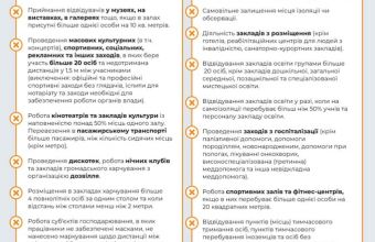 Також заборонена робота дискотек, закладів харчування з організацією дозвілля, робота після 22:00 до 7:00 ресторанів і кафе.