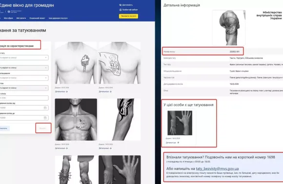Міністерство внутрішніх справ України повідомило, пише DailyLviv.com, що запускає новий онлайн-розділ «Впізнання за татуюванням» на порталі «Єдине вікно для громадян». Його створено для сприяння ідентифікації осіб, зниклих безвісти за особливих обставин.