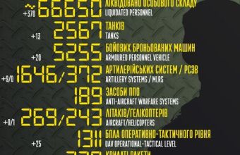 За минулу добу Збройні сили ліквідували 370 окупантів, а з початку агресії 66 650 загарбників було вбито, також захисники знищили 25 БПЛА та 1 гелікоптер.