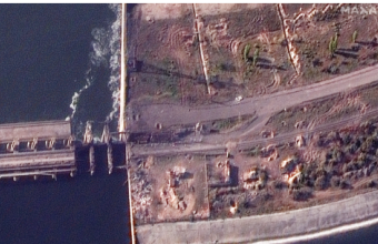 Пошкодження ділянки дамби, Нова Каховка, 11 листопада. Джерело: супутникове зображення ©2022 Maxar Technologies